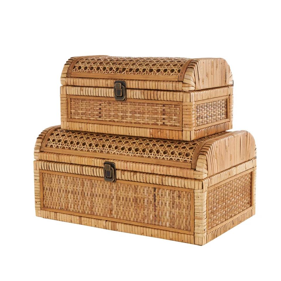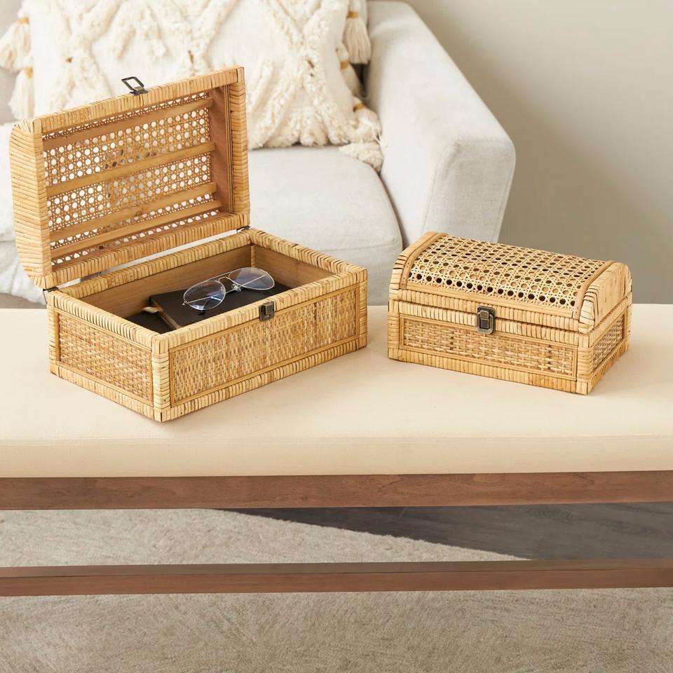 Name:Handwoven rattan decorative storage box set with curved lid