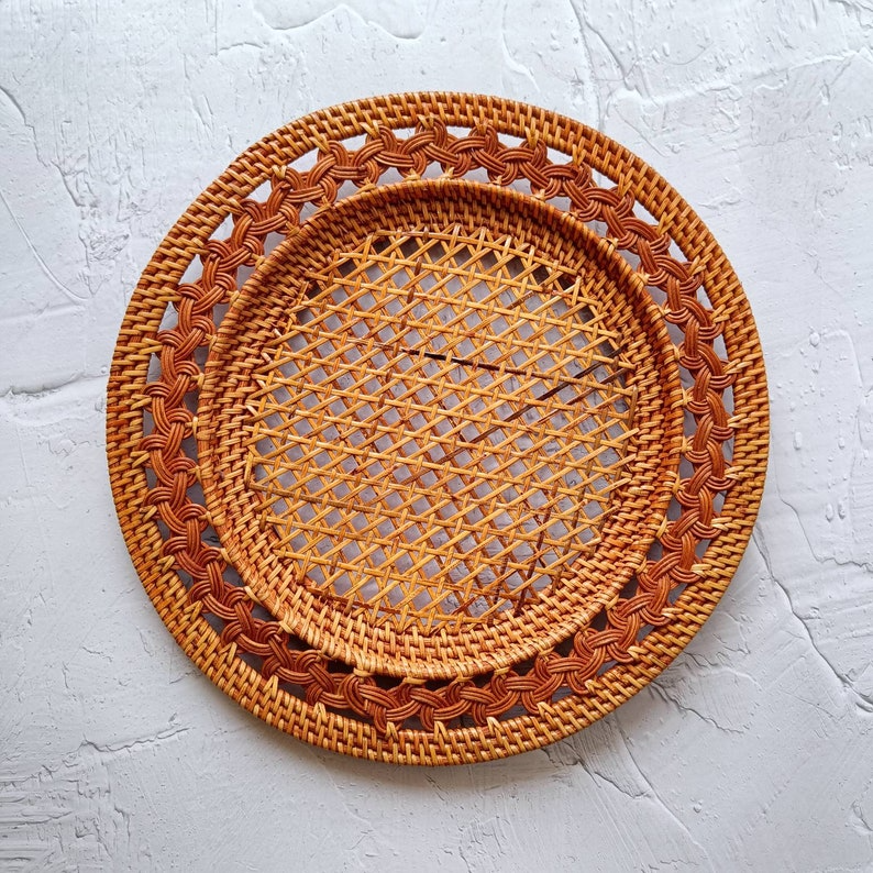 Handwoven rattan placemats:Size: D13 x H1 inch