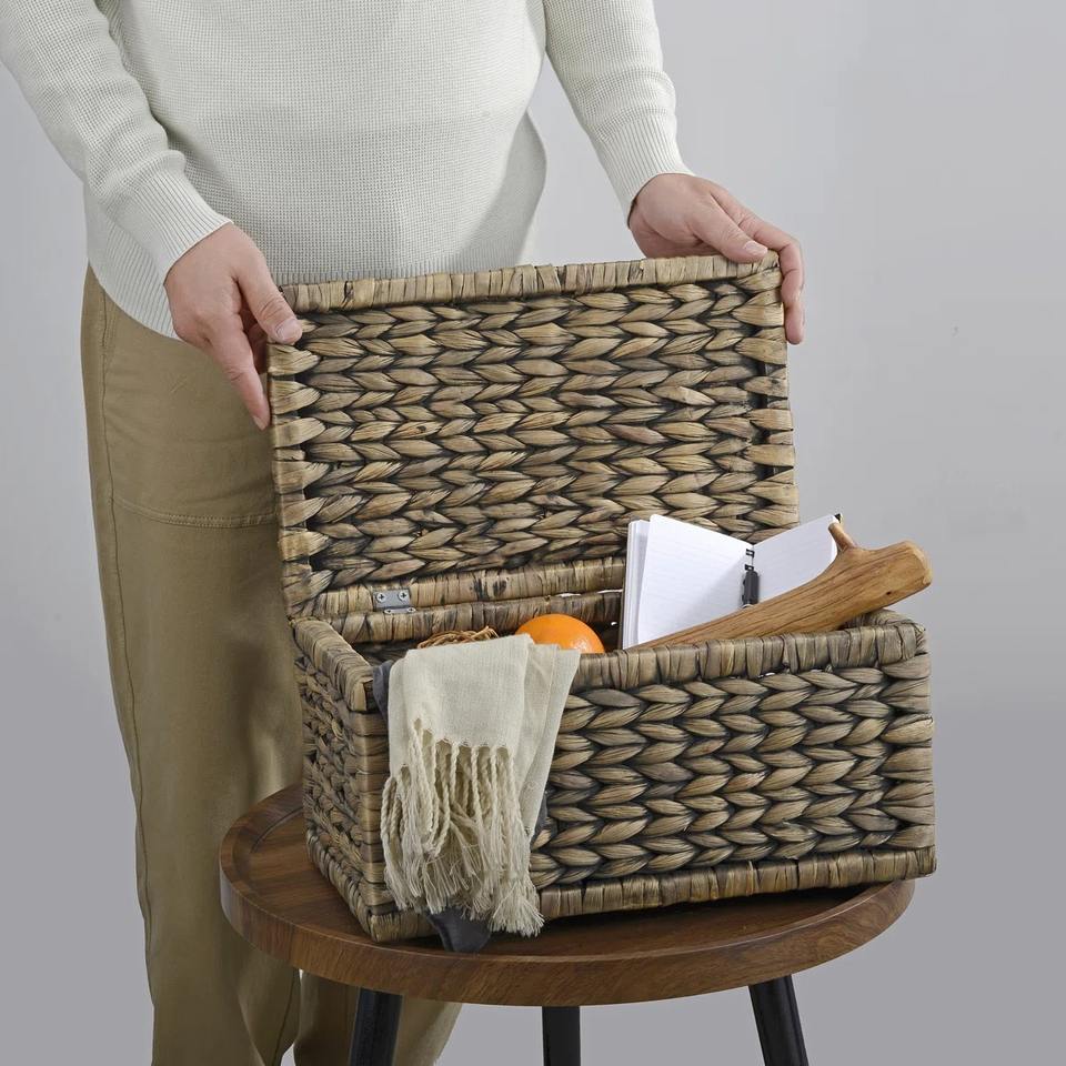 Name:Handwoven water hyacinth box hinged lid Size: L15,5 x W10 x H7,7 inch