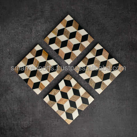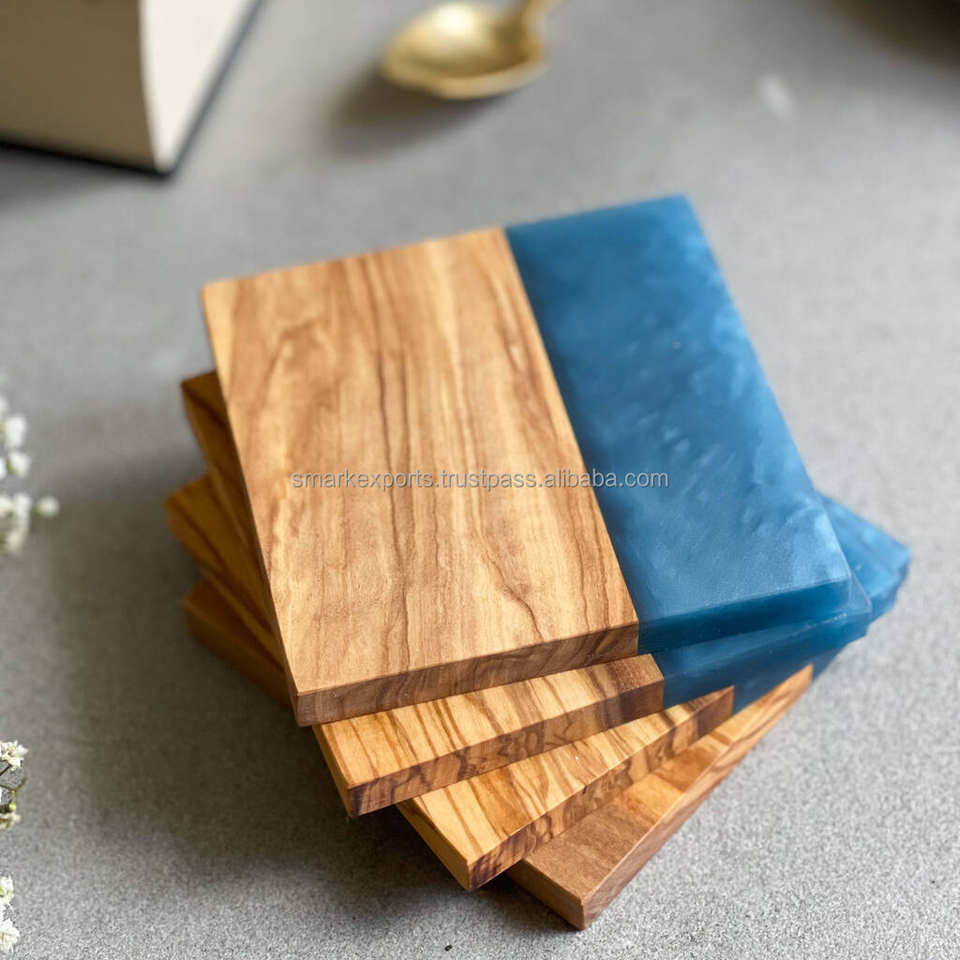 Handy Wooden and Resin Coaster Set Round and Square Drink Mat Tea Coaster Cup Holder Dining Room Tabletop Coffee Bar Accessories