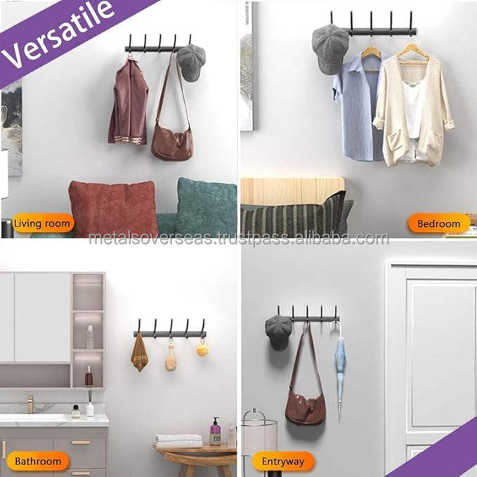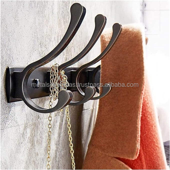 Simple Black Wall Hooks Zinc Alloy Clothes Hanger for Door Bathroom and Bedroom