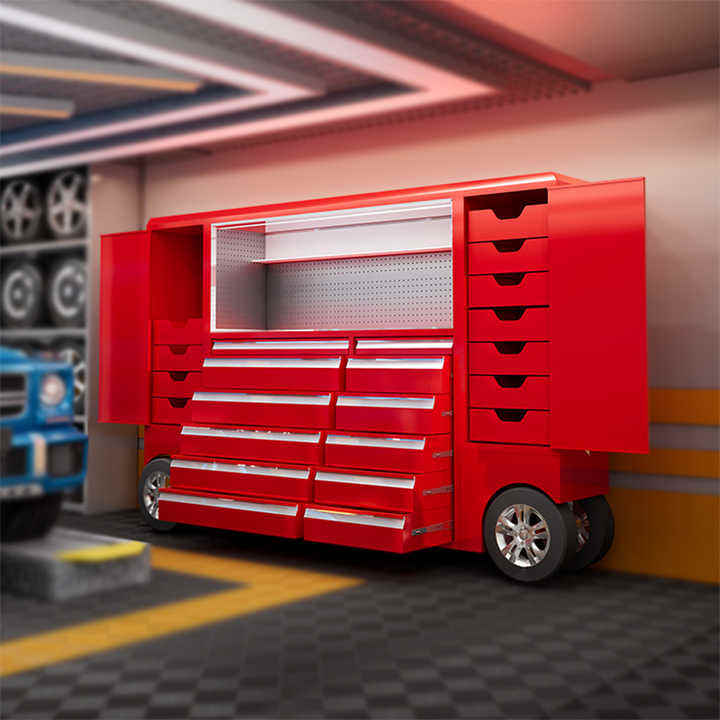 accessories:tool box, DRAWERS, tool tray, keyed lock