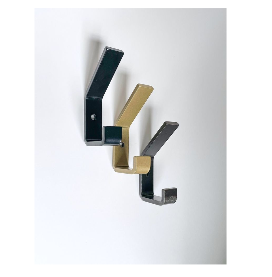 Hanging Coat Hook Solid Metal Shiny Polish Double Hanger Metal Wall Hook Handmade Abstract Metal Hook Unique Design
