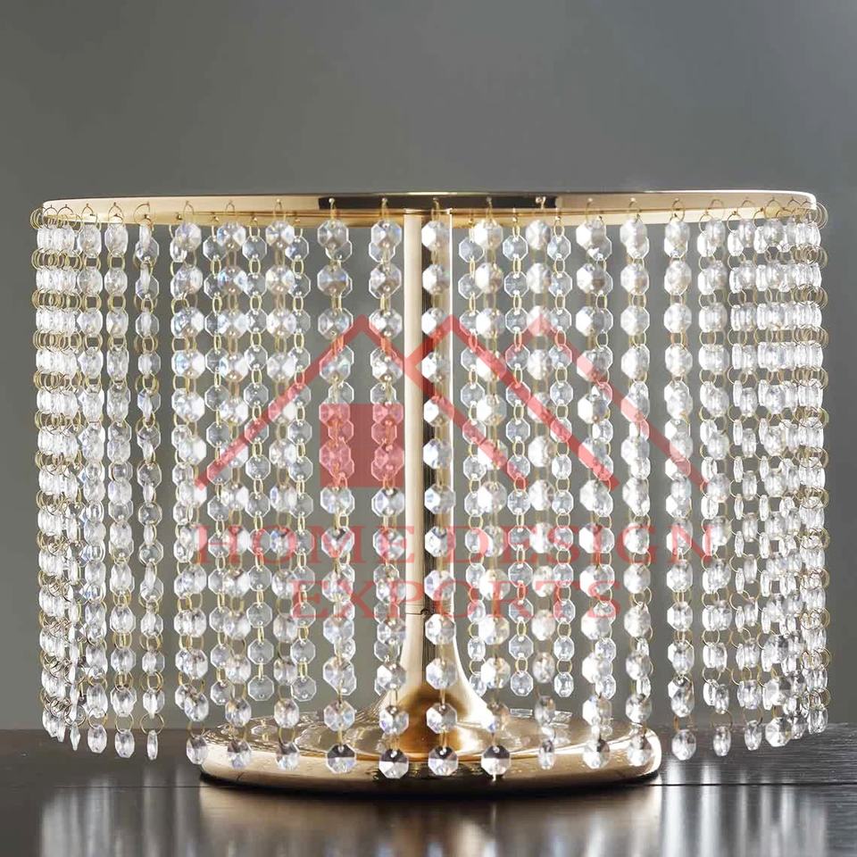 Hanging Crystal Beaded Drop Metal Cake Stand for Wedding and Events Party Decor High Quality Round Table Top Cake Stand for Sale
