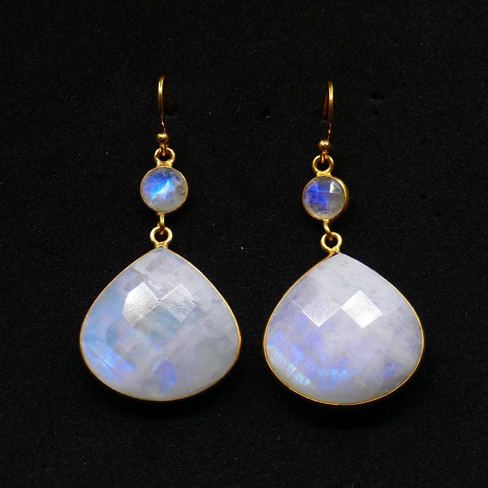 Hanging Fashionable 925 Sterling Silver White Rainbow Gemstone Classic Women Wear Gold Plated Earring Set