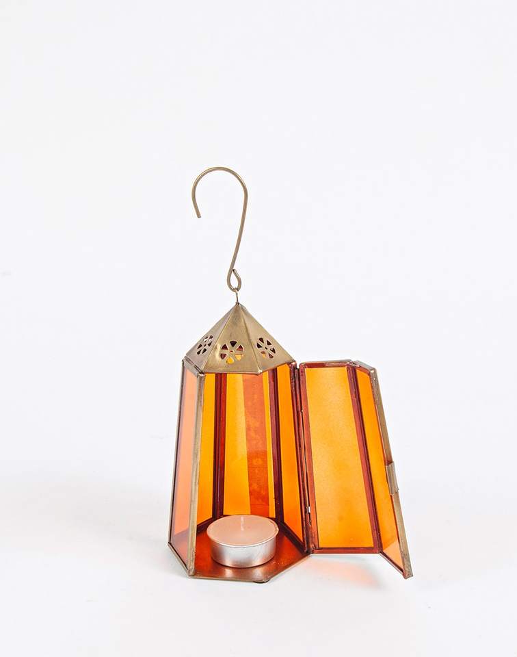 Hanging Metal Lanterns Home and Garden Decoration Orange Glass Frame Wholesale Lanterns Candle Jars Holder for Christmas Supply