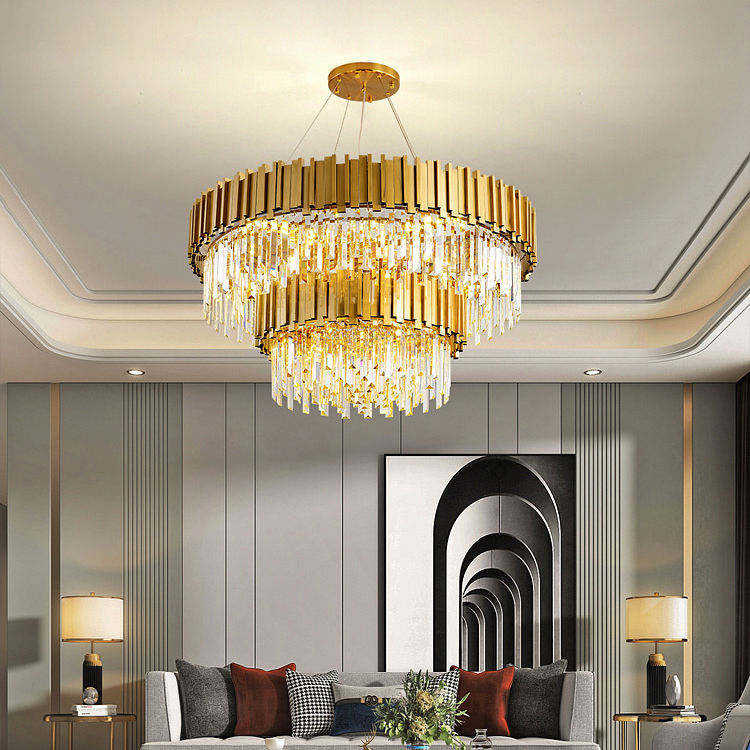 Hanging Pendant Light Living Room Switch Control modern luxury k9 crystal gold chandeliers ceiling luxury