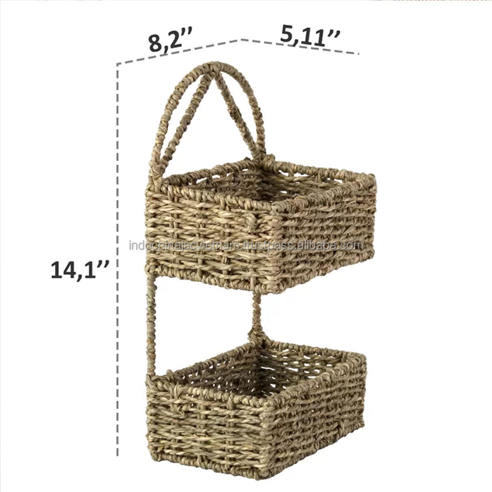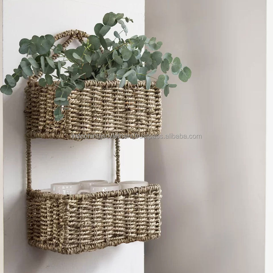 Hanging Seagrass Shelf Rack With Metal Frame , Vintage Seagrass Straw Shelves Made in Vietnam