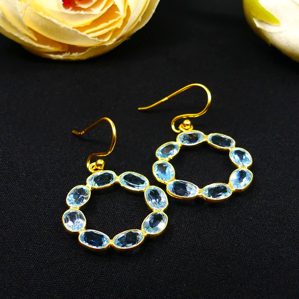 Hanging Sterling Silver 925 Gold Plating Blue Topaz Gemstones Classic Wholesale Wedding Women Wear Earrings