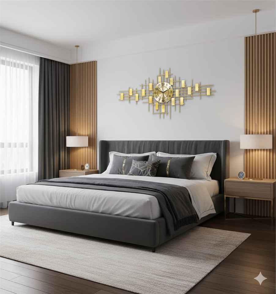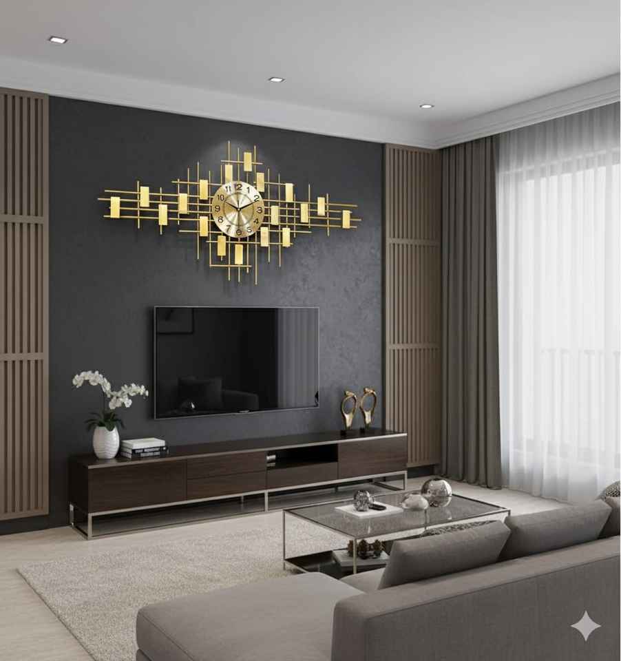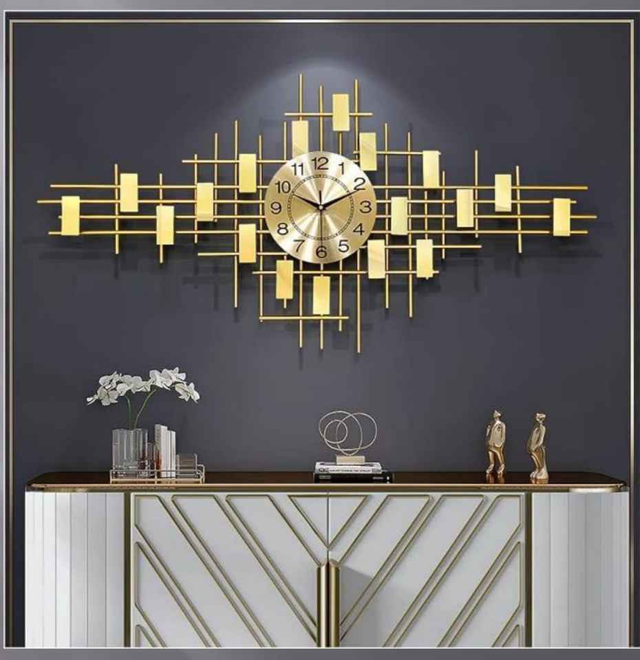 Hanging Metal Iron Golden Wall Clock with Needle Display Modern Design for Living Room Bedroom Office Decoration