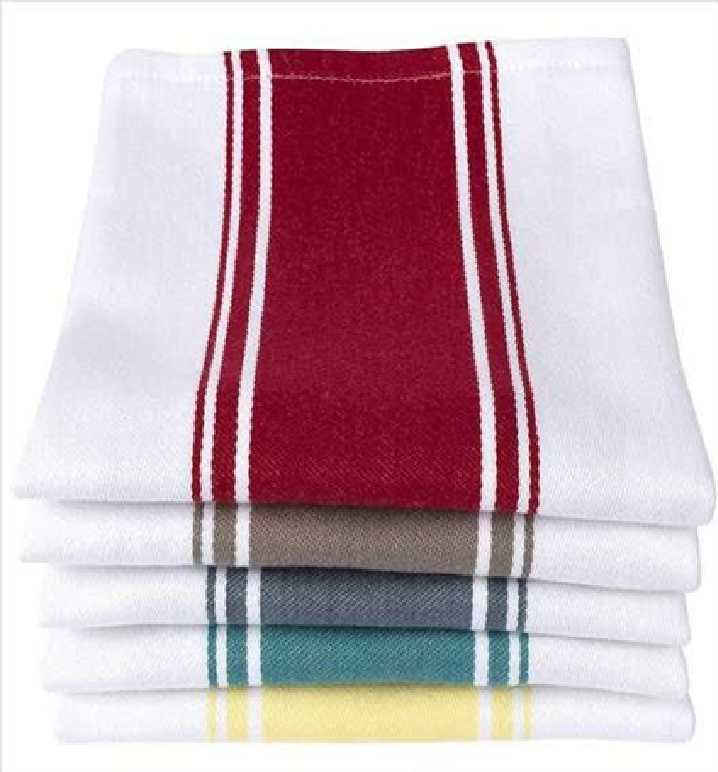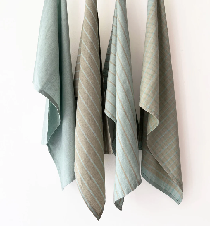 Hanging blue cotton kitchen towel set, one solid blue, one blue gingham check, available at wholesale prices.
