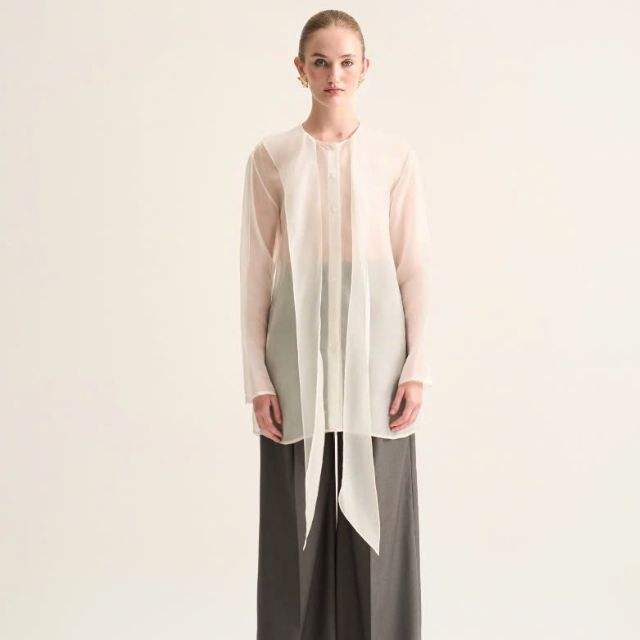Hanna Women's See-Through Organza Shirt Elegant Winter Top Made in Vietnam Custom ODM Services
