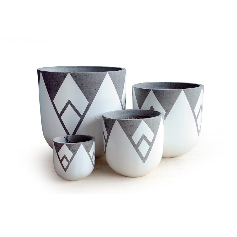 [Hannah] Cement Planter - Pattern Painting, GRC Pot, Set of 4// Bao Vy Pottery // Supplier in Vietnam