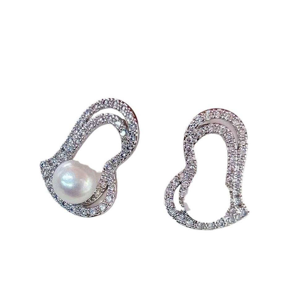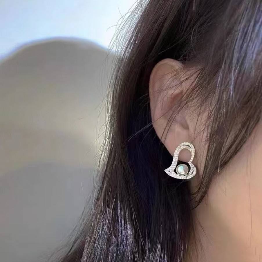 Hao Shi Fashionable Inlaid 6-7mm Freshwater Pearl Earrings Love Style High-End Temperament for Women Wholesale