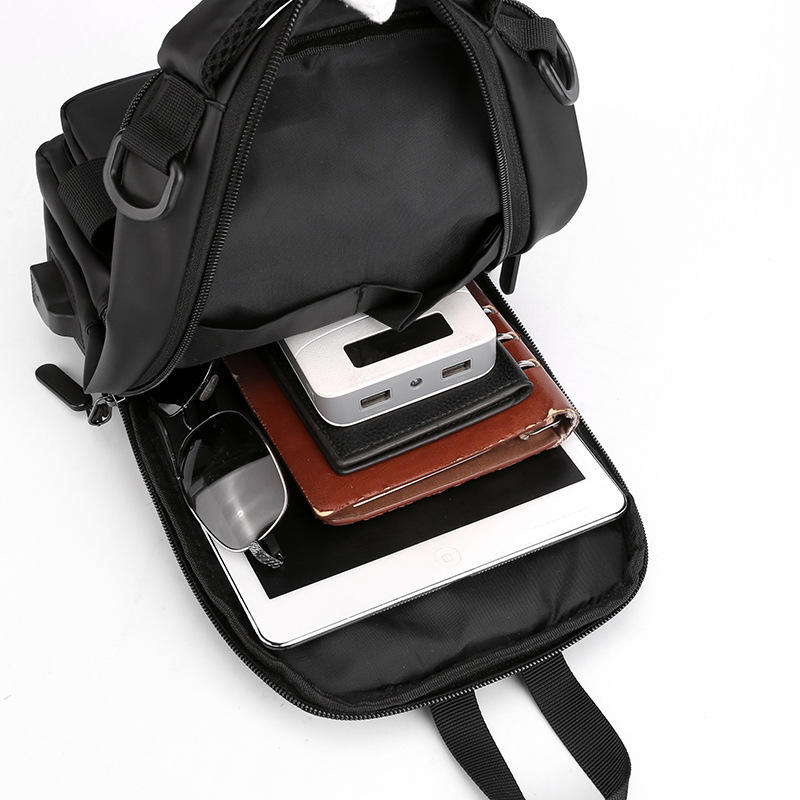 HaoShuan Men's Chest Bag 15 Inches Waterproof Crossbody Backpack With Zipper Pocket Everyday Outfits Solid Color Black