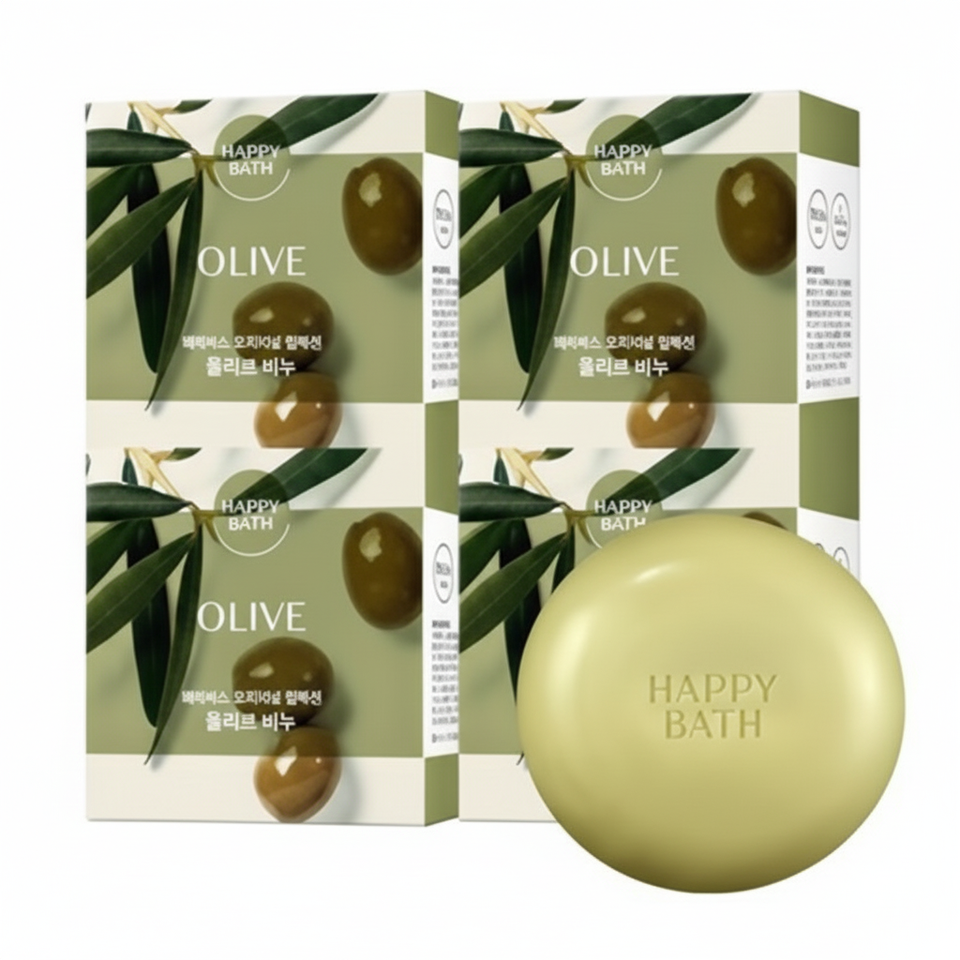 Happy Bath 90g Olive Essence Herbal Scent Soap Solid Form Discount Pack of 4