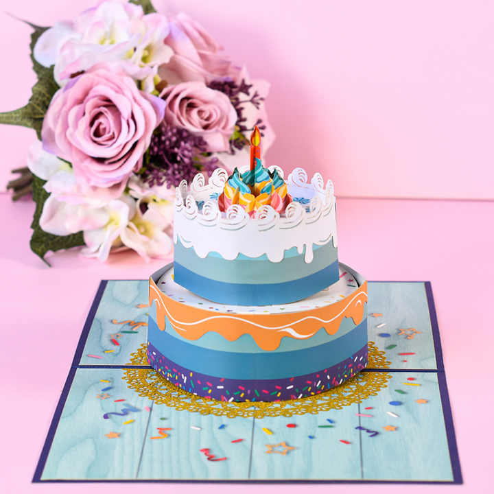 Happy Birthday Card for Girl Kids Wife Husband 3D Birthday Cake Pop-Up Greeting Cards Postcards Gifts With Envelope