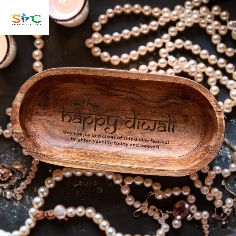 Happy Diwali Engraved Large Bowl Diwali Party Table Top Decoration Unique Design Gift Serving Tray