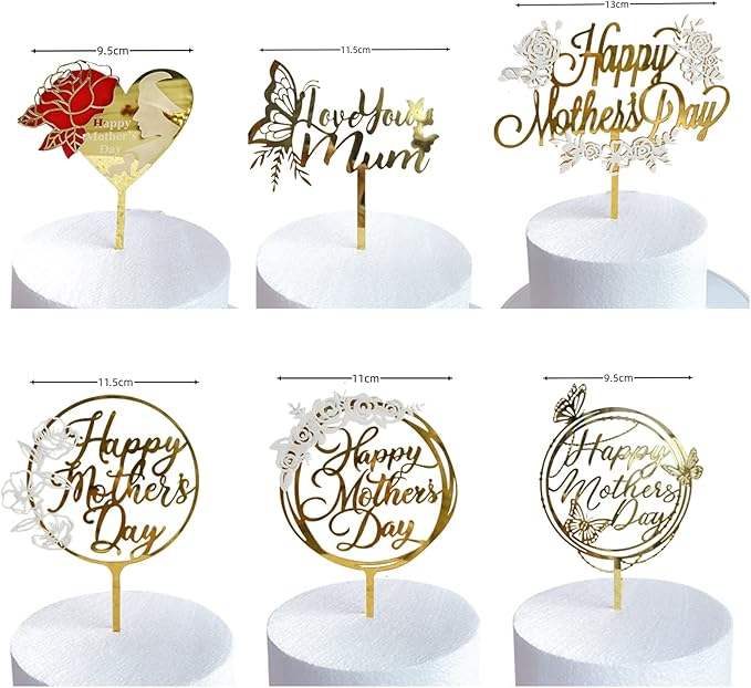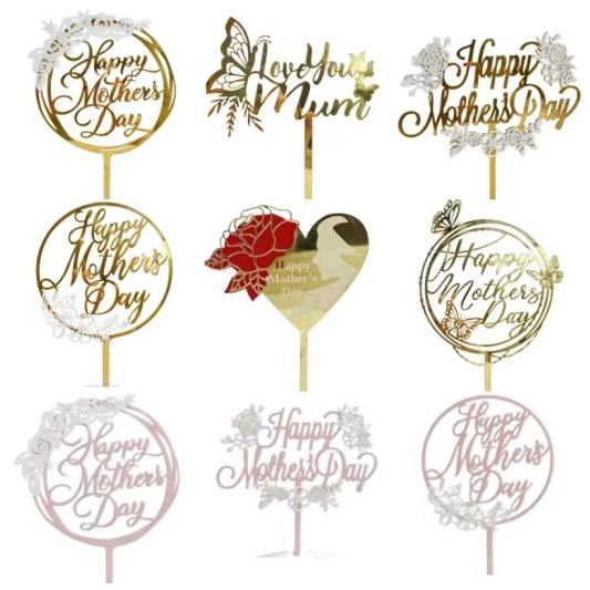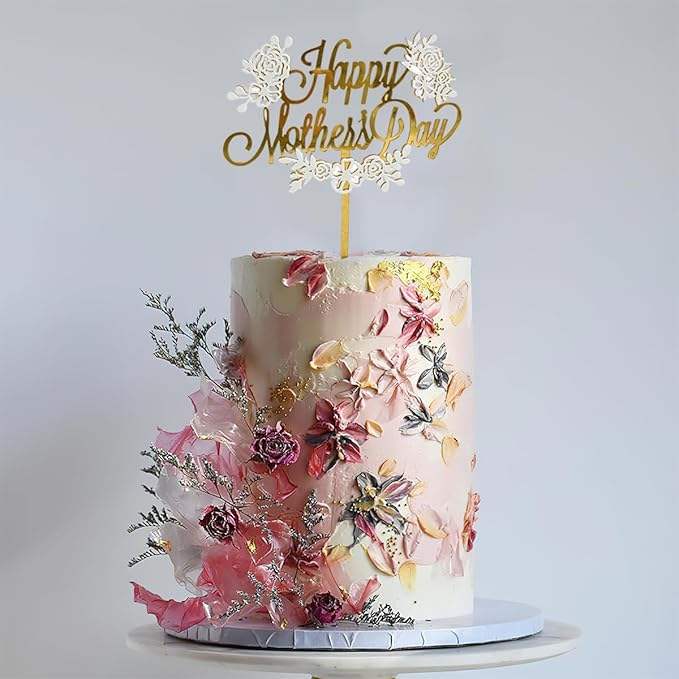 Happy Mother's Day Gold Cake Topper Acrylic and Flower Heart Cake Decoration for Mother's Day Party Supplies