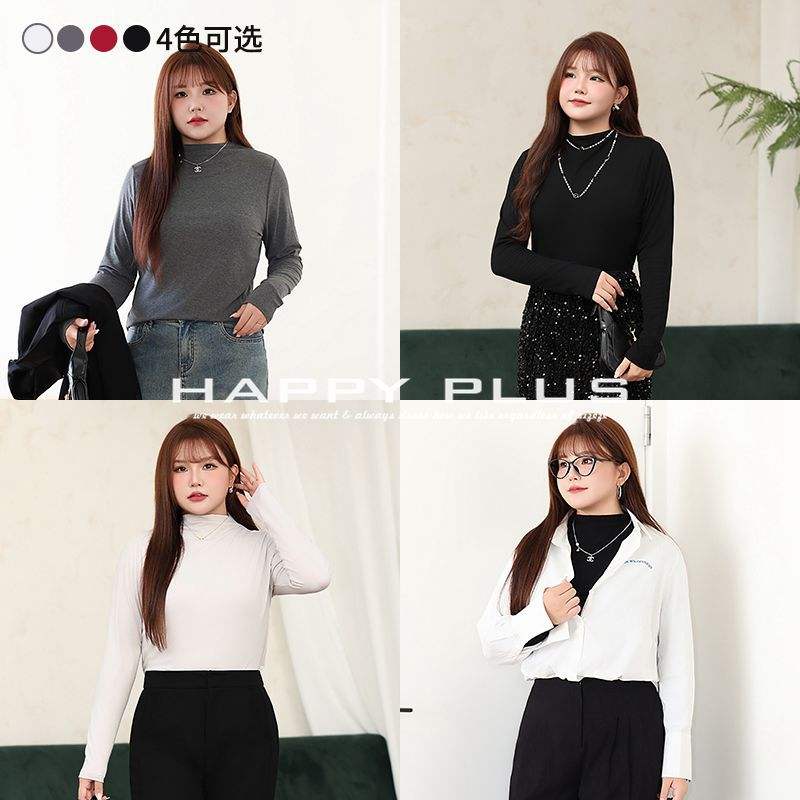 Happy Plus Minimalist H-line High Neck Long Sleeve Top Women Plus Size Solid Color Knitwear Inner Layer Top