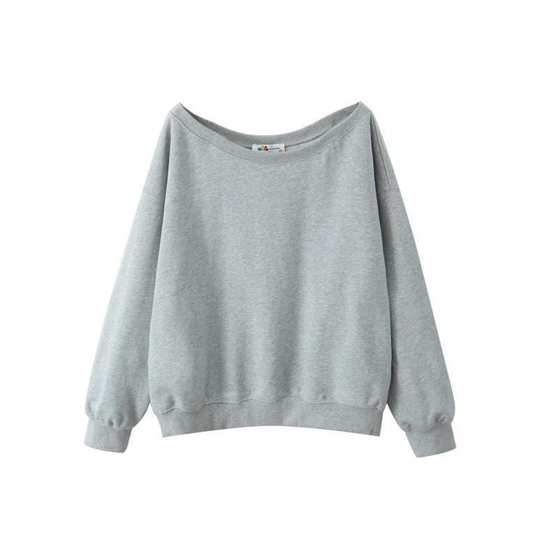 Happy Plus Women's Off Shoulder Long Sleeve Sweatshirt Plus Size Solid Color Cotton Knitted Casual Spring Top