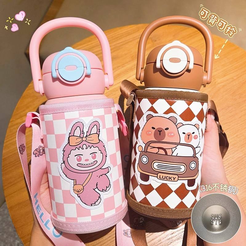 Happy Rabbit Stainless Steel Thermos Water Bottle 316 With Straw For Kids Travel Portable Cartoon Design