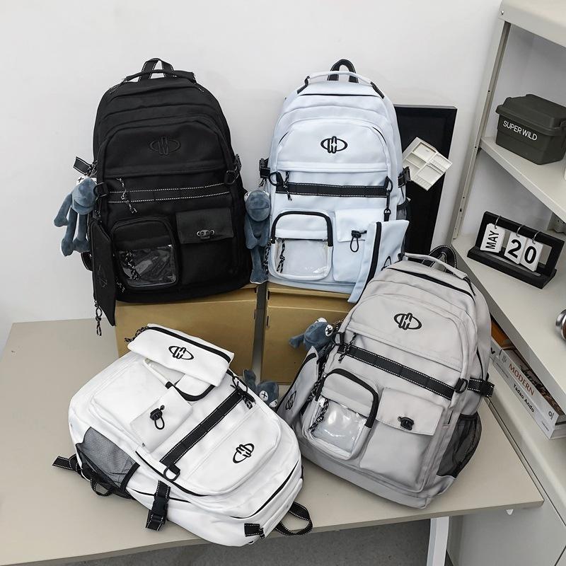 Harajuku Retro Backpack 20 Inches Large Capacity Unisex School Education Campus Style Letter Pattern Detachable Straps
