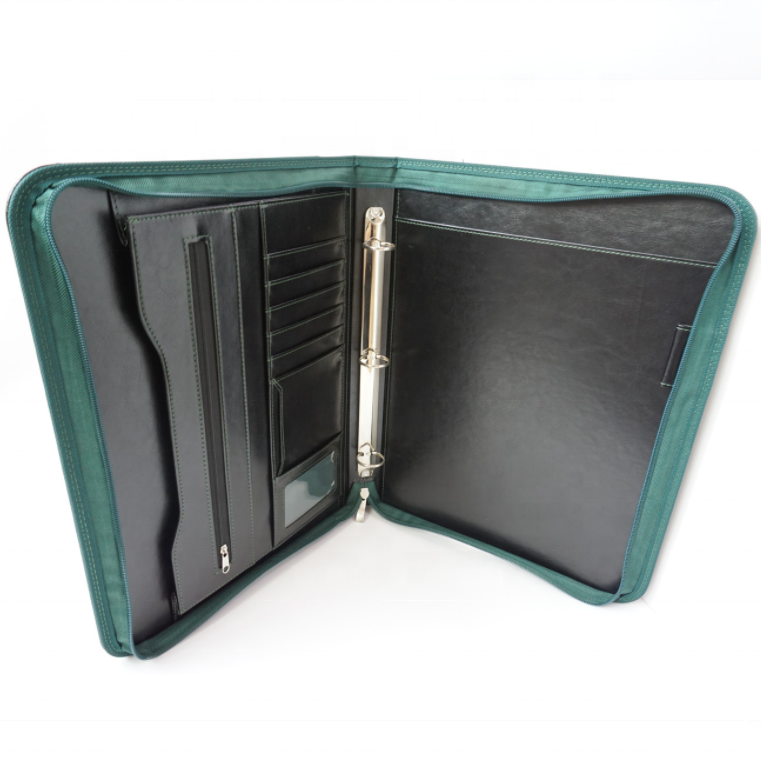 Hardcover PU Cover Leather Padfolio Document File Folder Portfolio Organizer Letter Size with Zipper
