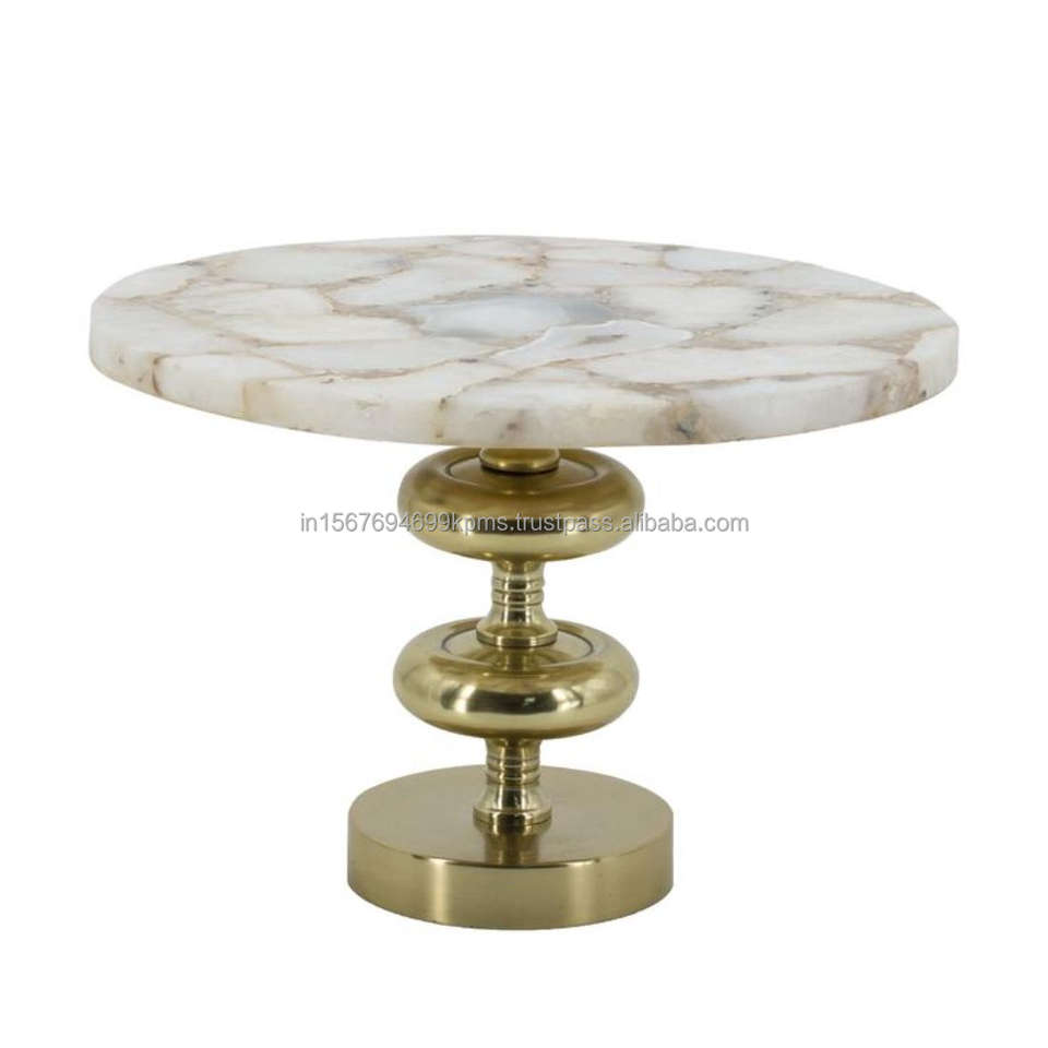 Hardly Manufactured Unique White Marble Display Cake Stand Kitchen Appliance Pedestal Brass Base New Sale Wood Material Cake