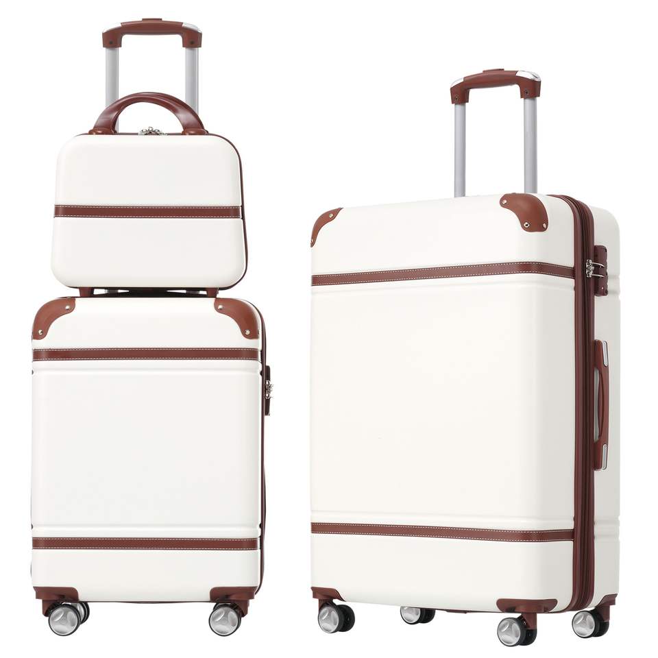 Hardshell Luggage Sets 3 Pieces 20"+24" Luggages and Cosmetic Case Spinner Suitcase with TSA Lock Lightweight,White