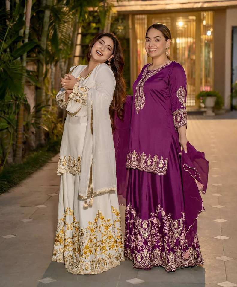 SHARARA WORK:Heavy Embroidery Work With Fancy Borders Less Work Fully Flair.