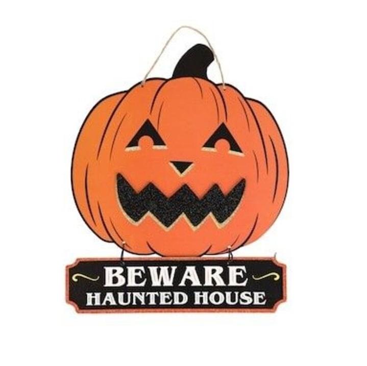 Haunted spooky Halloween home accessories pumpkins skeletons ghost figures bats witches cobwebs flickering candles eerie glow