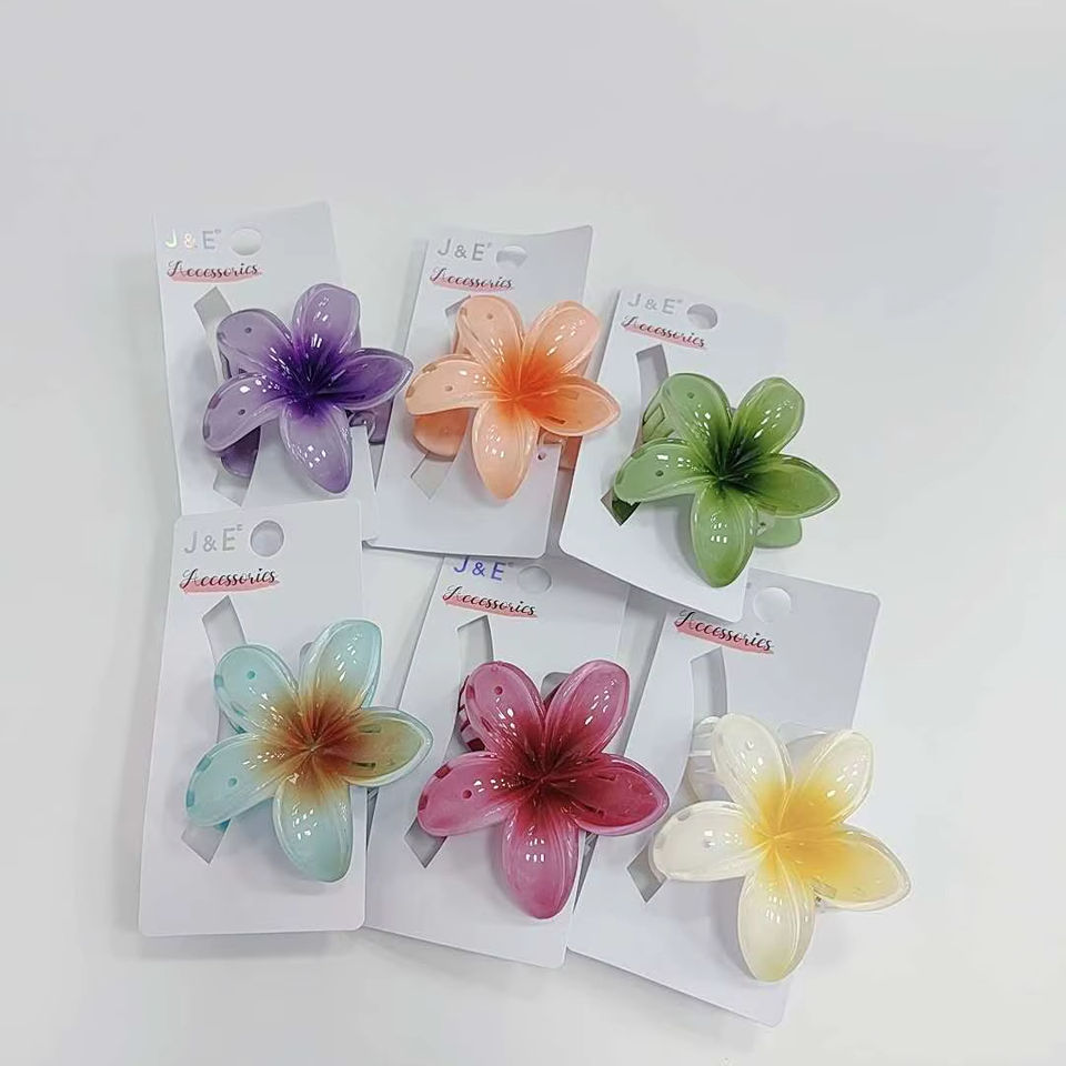 Hawaii Beach Vacation Wind Flower Hair Clip Mixed Color 8cm Glossy Metal and Plastic Elegant Style 12pcs Pack