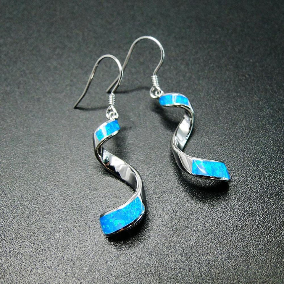 Hawaii Style 925 Sterling Silver Opal Gemstone Jewelry Blue Opal Hoop Earring