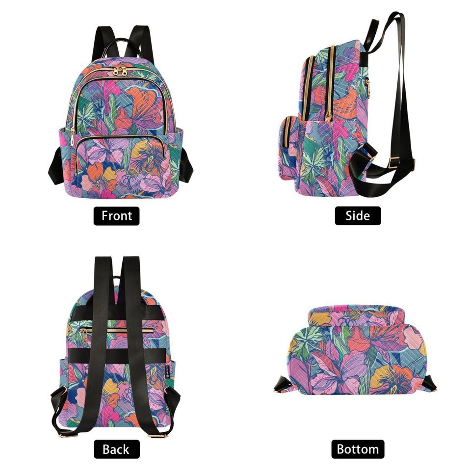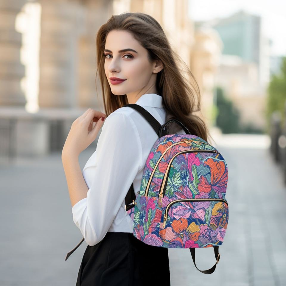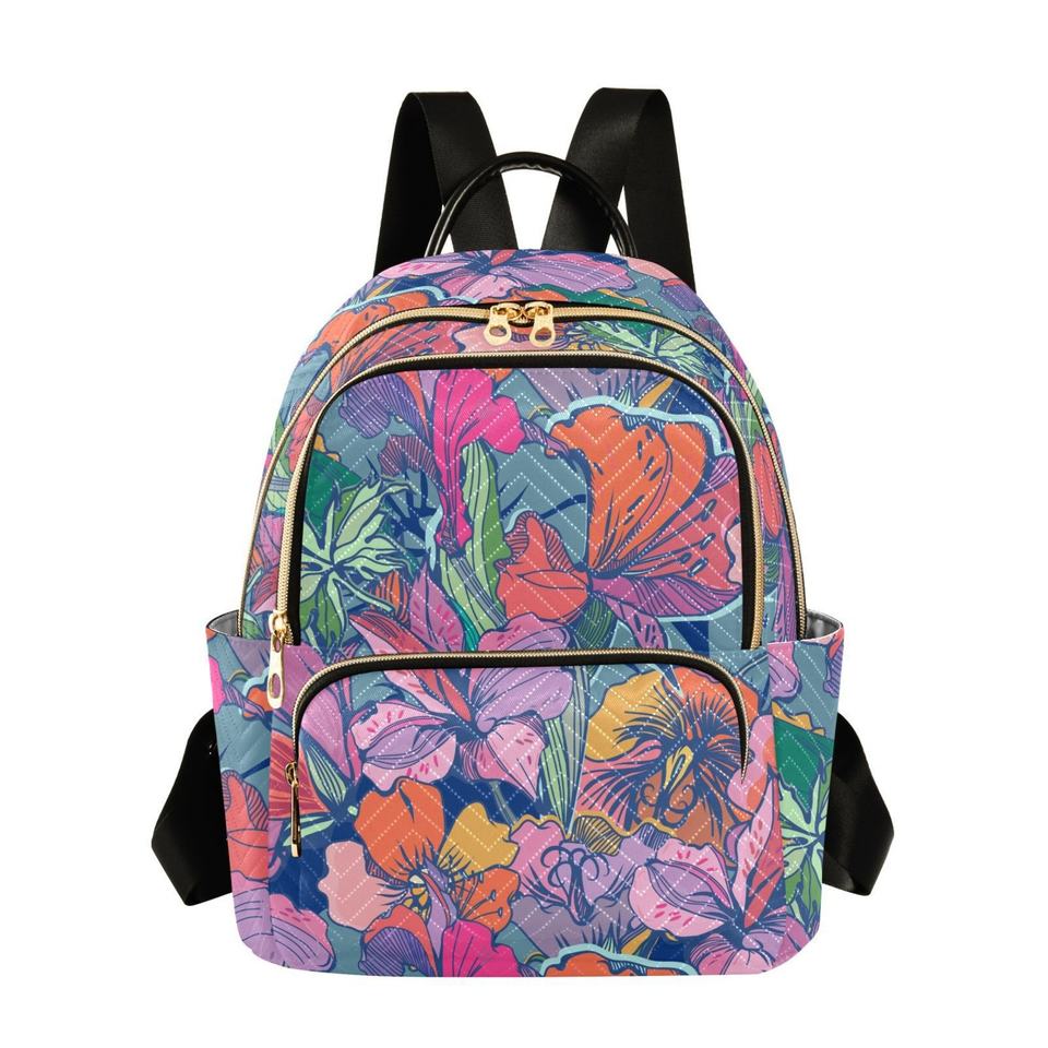Hawaiian Backpack Customs Flower Two Size Travel Backpacks Quilted Casual Travel Women's Sports Backpack With Logo