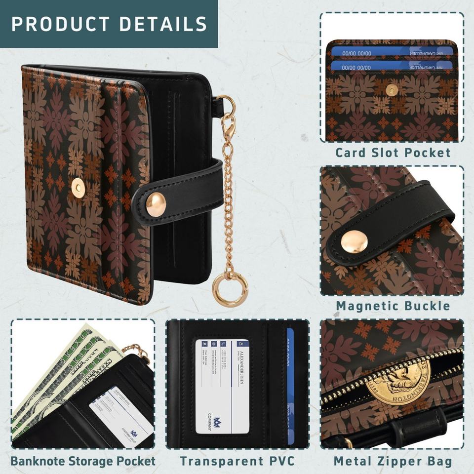 Hawaiian Flower Quilted Design Small Rfid Zipper Coin Pocket PU Leather Compact Cash Credit Card Holder Travel Wallet for Women