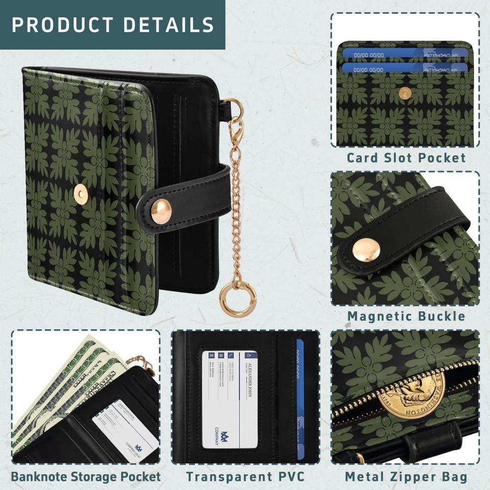 Hawaiian Green Quilt Hot Design Rfid Zipper Coin Pocket PU Leather Compact Cash Credit Card Holder Travel Wallet for Women