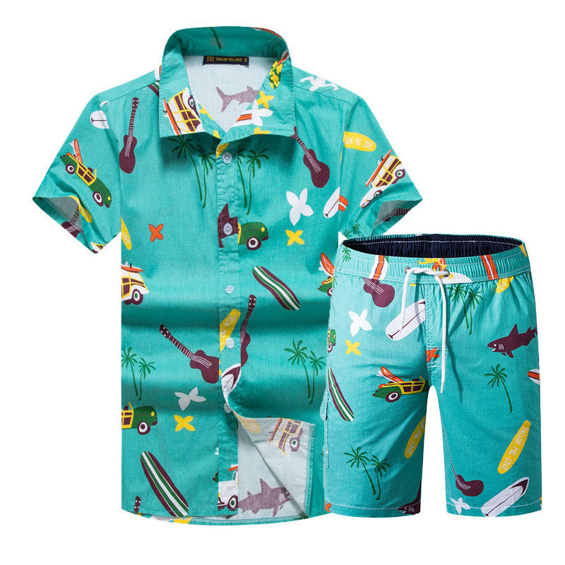 beach wear shorts mens shirts set