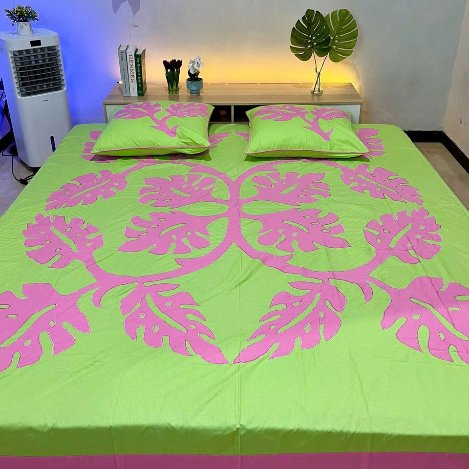 Hawaiian Printed 100% Cotton bedsheet Quilt Hand Stitched washable Blanket Throw Wholesale Vintage for Room Decor