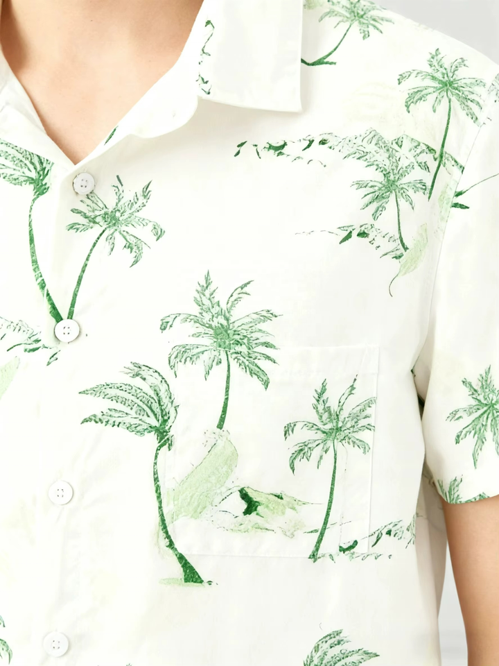 Hawaiian Shirt for Men, Unisex Summer Beach Casual Short Sleeve Button Down Shirts, Printed Palmshadow Clothing
