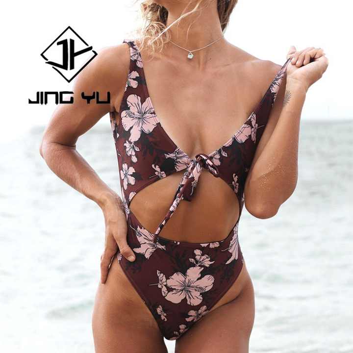 Hawaiian Swimwear High Quality Design Knotted Printed Swimsuit Custom Recycled Nylon Fabric One Piece Swimsuit