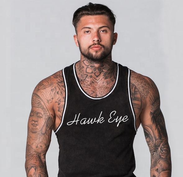 Hawk Eye Sports Men's Black Singlet with White Trim Summer Tank Sleeve Cotton/Polyester Breathable PayPal Verified