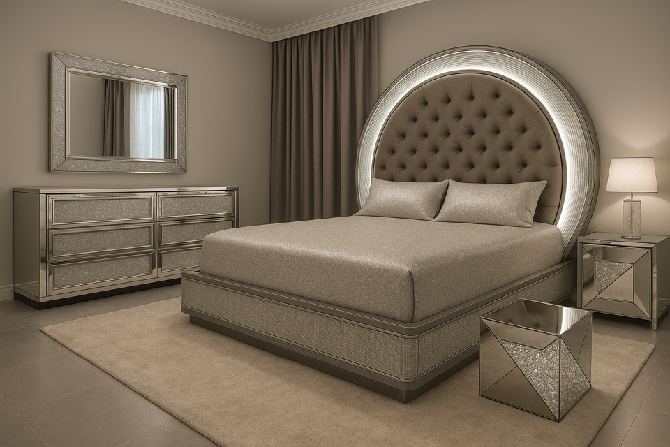 Headboard with Mirror Crystal Luxury Double Queen king Velvet Fabric Upholstered Bedroom Furniture