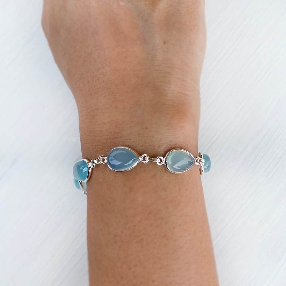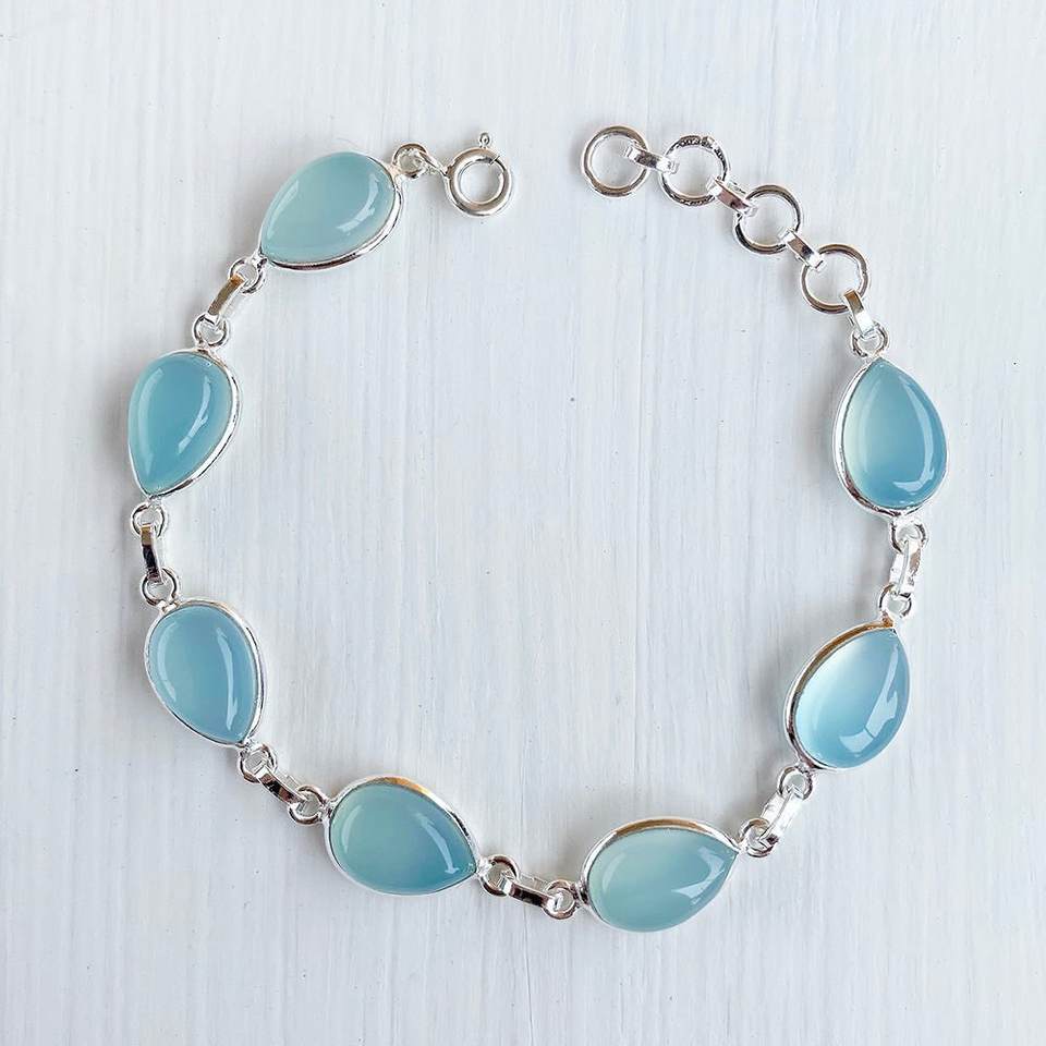 Keyword:sea blue chalcedony bracelet, silver gemstone bracelet