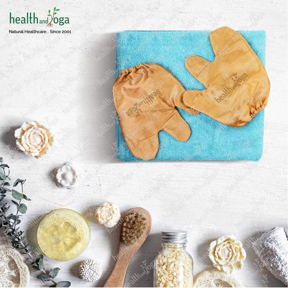 HealthAndYoga Silk Garshana Ayurvedic Massage Gloves 100% Natural Dry Brushing for Lymphatic Circulation and Skin Brushing.