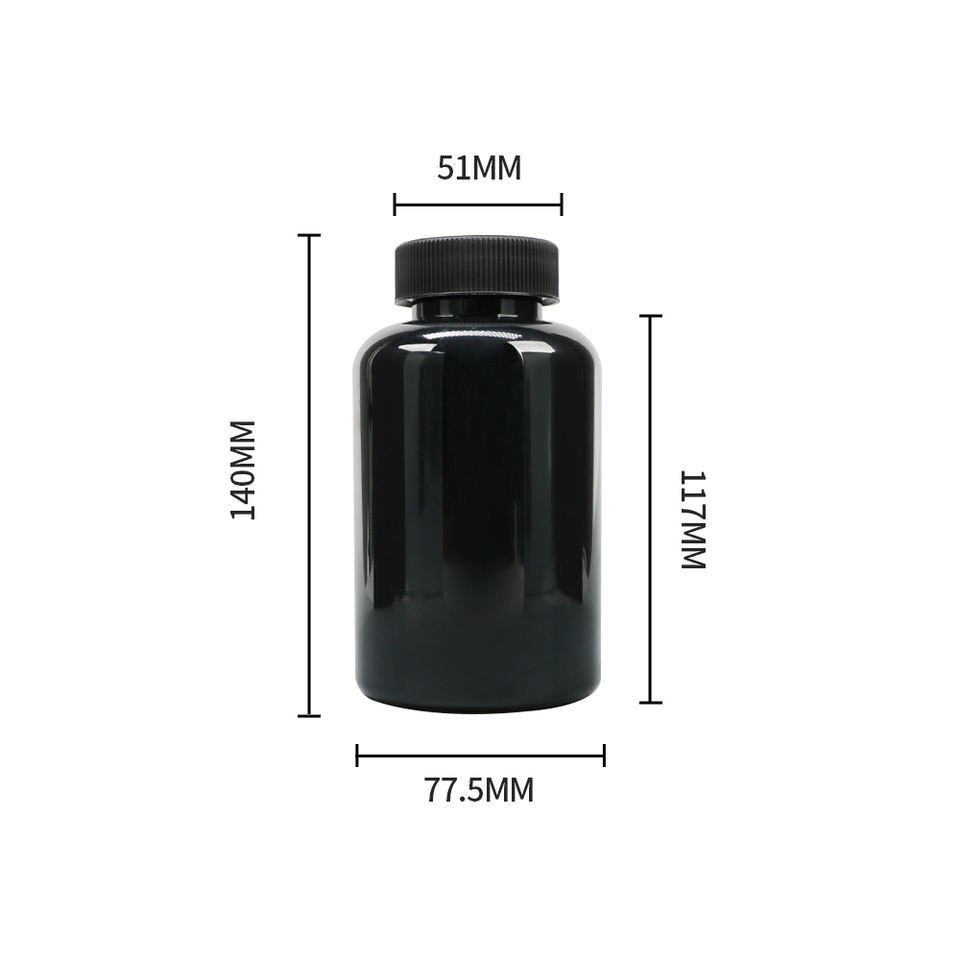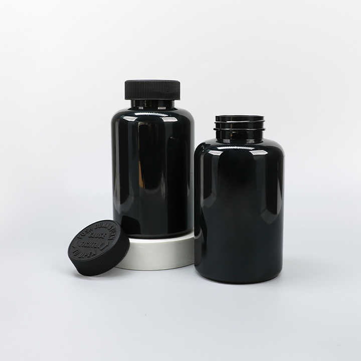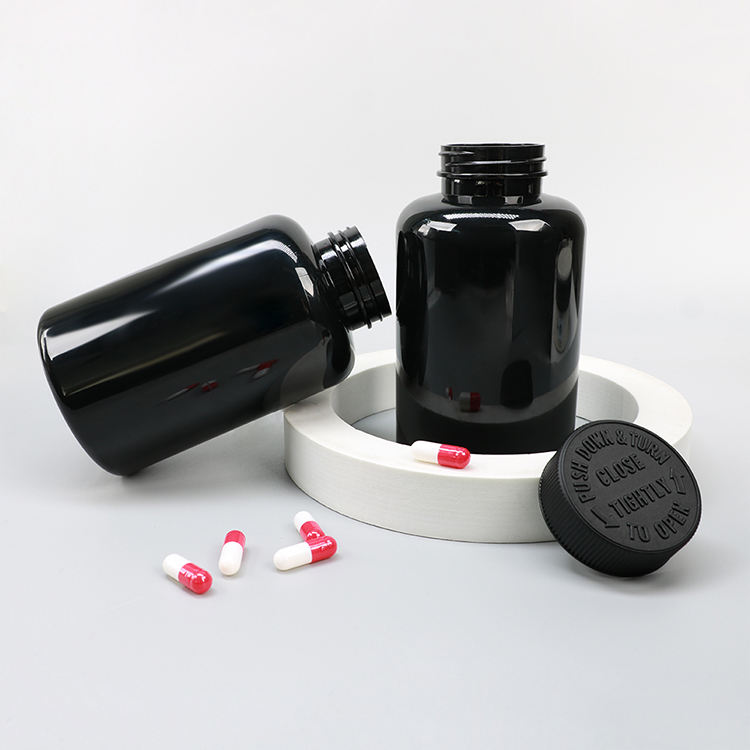 Healthcare Supplement Container Custom Vitamin Round Bottle 500ml Pet Empty Black Medicine Capsule Pill Bottle With Screw Cap