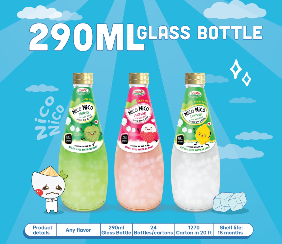 Healthy Juice Drink with Nata De Coco 290ML Glass Bottle Coconut Flavor Nico Nico Brand High Quality Soft Drink Wholesale Price