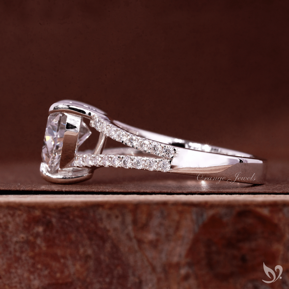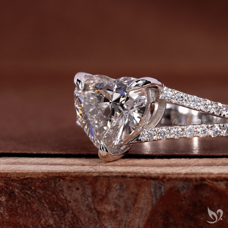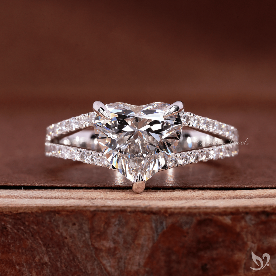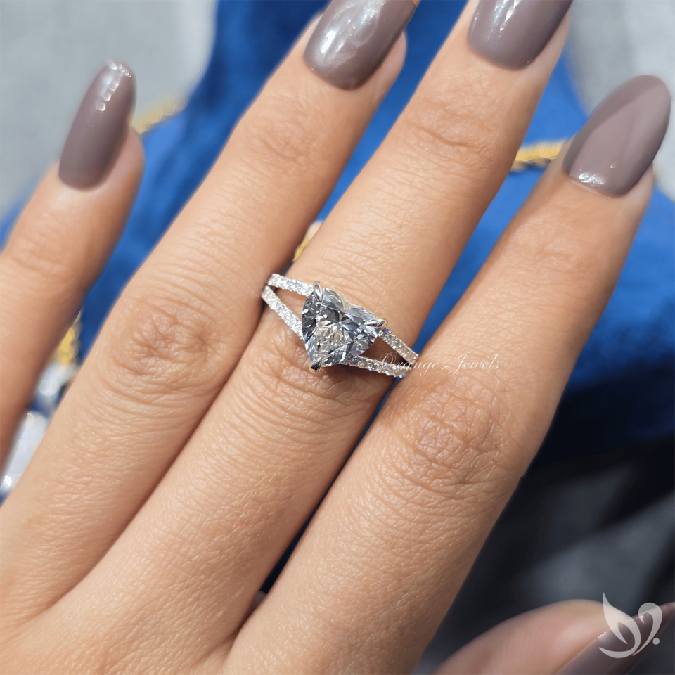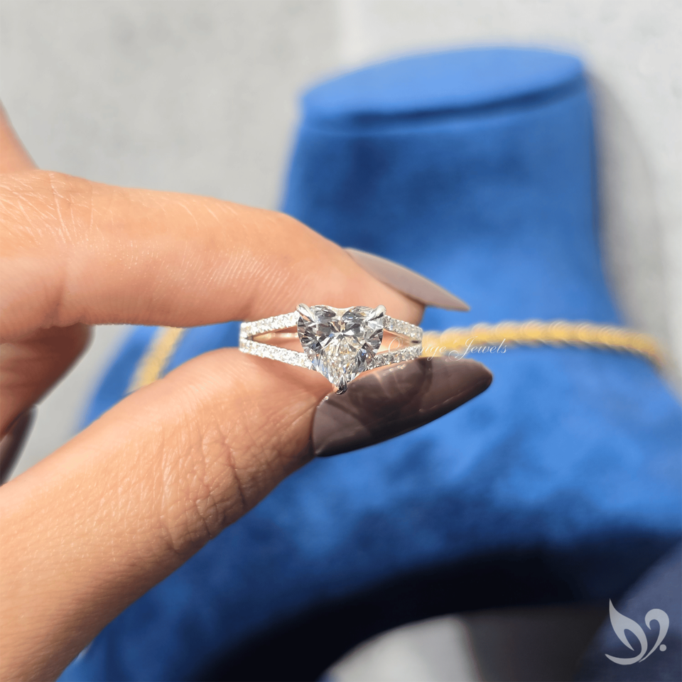 Heart 2CT Lab Diamond Engagement Ring Split Pave Dual Shank 10K White Gold IGI Certified Luxury Wedding Ring