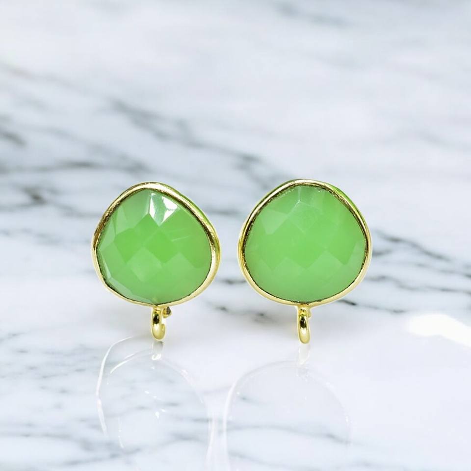 Heart Bezel Chrysoprase Chalcedony Gemstone Studs Earrings - DIY Loop 8 MM Gemstone Studs Earrings - Handmade Studs for Women