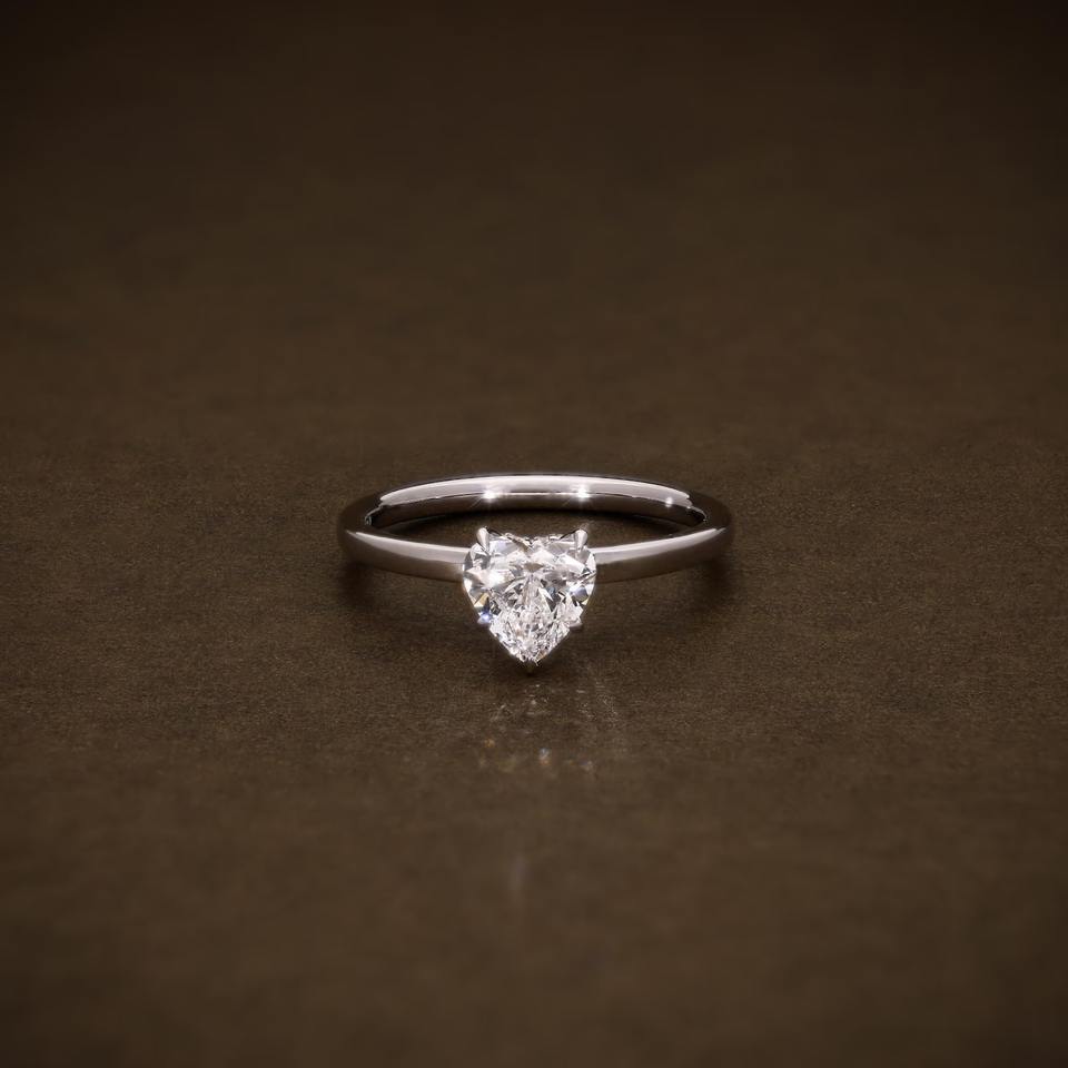 Heart Cut Lab Grown Diamond Engagement Ring 1.01 CTW F VVS2 IGI Certified Diamonds Solitaire Ring With Secret Halo Diamonds